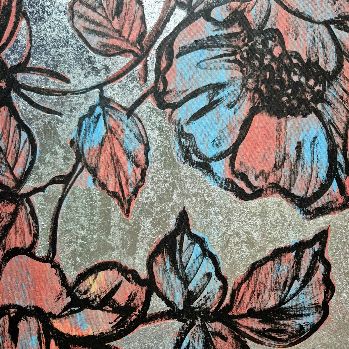 Complimented by a shimmering silver leaf background