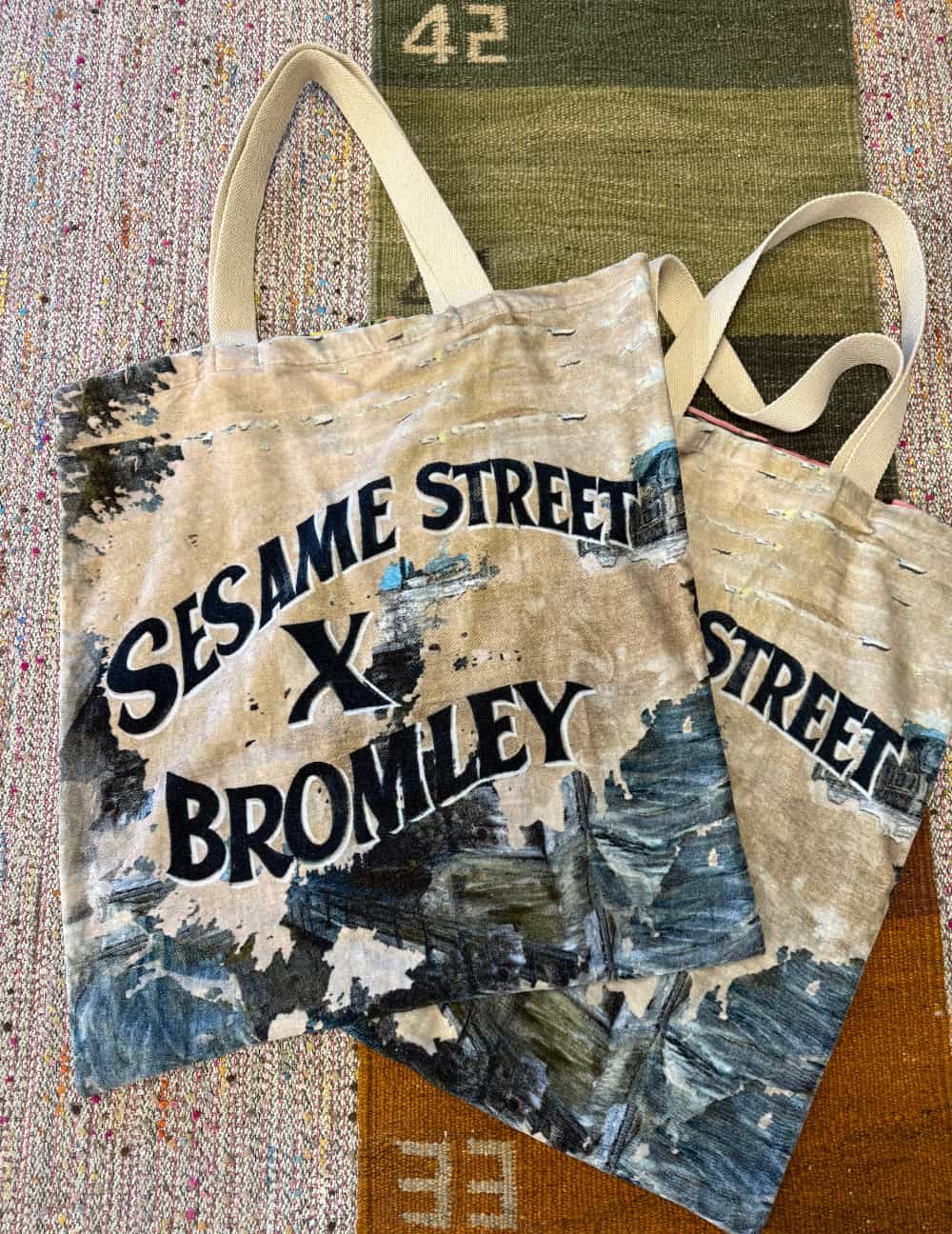of signature print cotton velvet tote bags.
